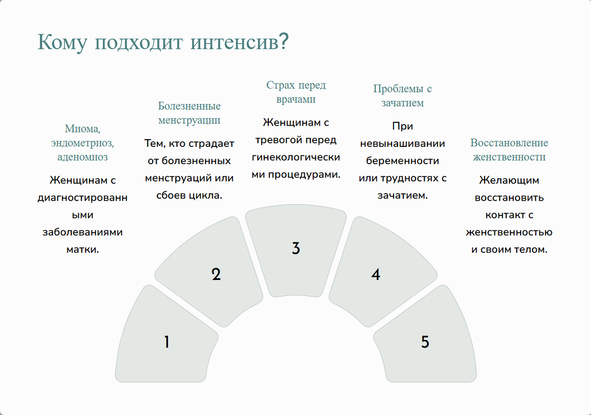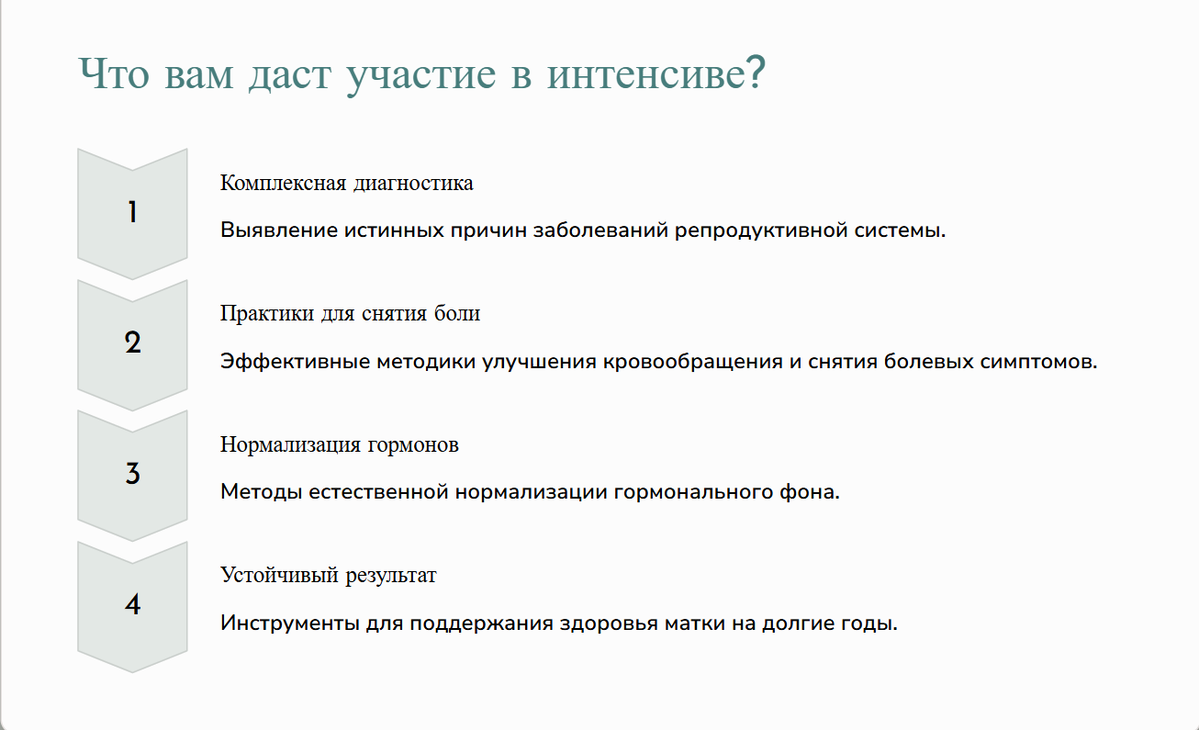 Интенсив основан на современных медицинских методиках для восстановления здоровья матки и репродуктивной системы.